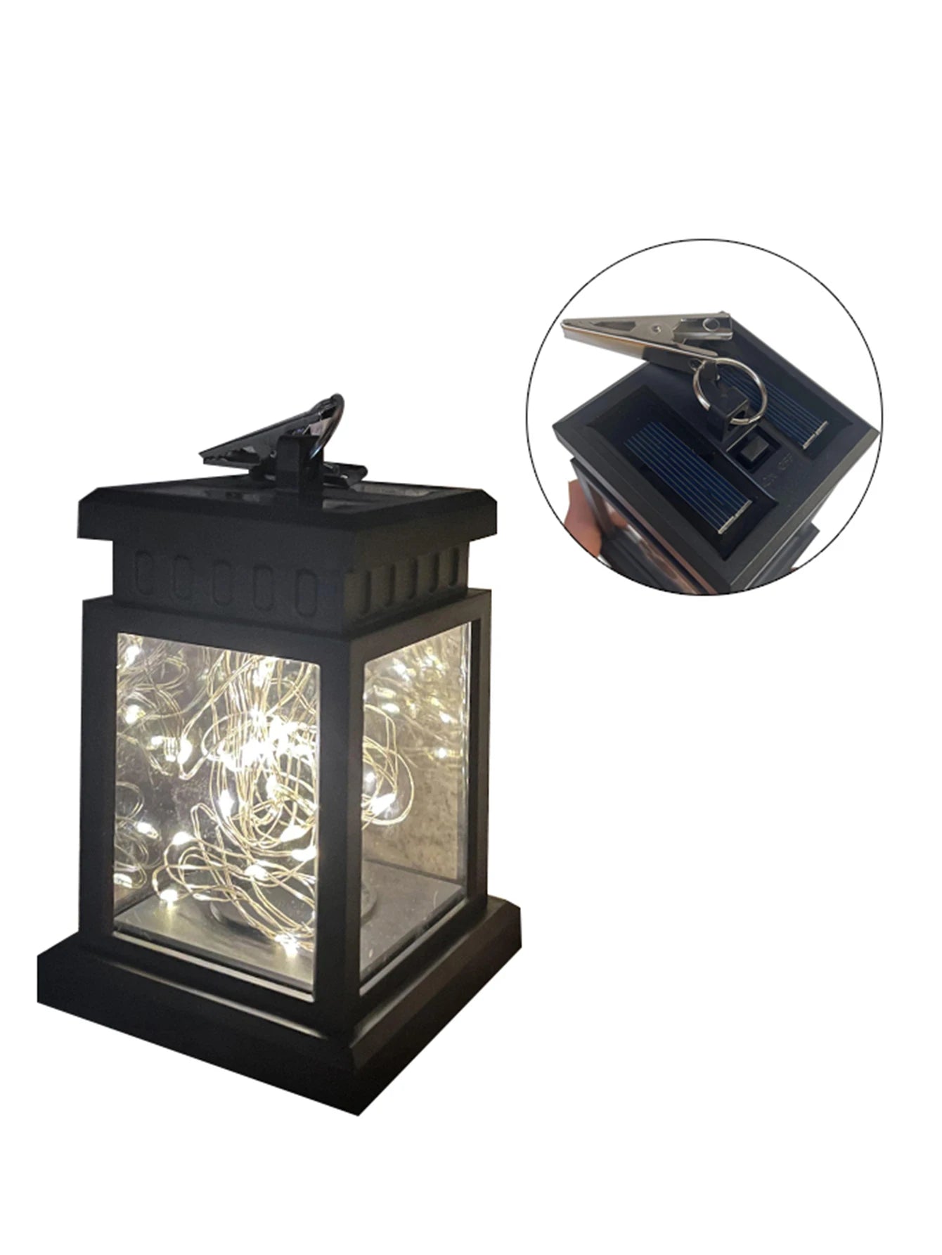 Equipado com um clipe, gancho e estaca de solo , permitindo que você o pendure em árvores, coloque-o sobre uma mesa ou insira-o no gramado ou no solo. -